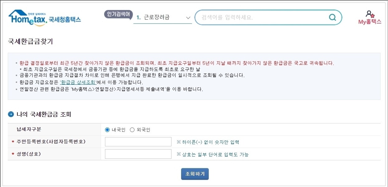 국세청 환급금 조회