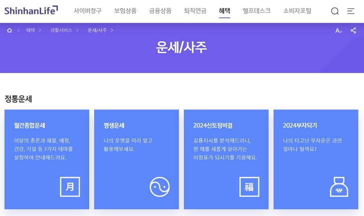 - 신한생명 운세 서비스: 다양한 운세를 무료로 제공하고 접근이 쉬워요